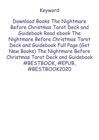The Nightmare Before Christmas Tarot Deck and Guidebook PDF Download The Nightmare Before Christmas Tarot Deck and Guidebook BY. View flipping ebook version of DOWNLOAD The Nightmare Before Christmas Tarot Deck and Guidebook published by ziyalenny on 2021-06-23. The Nightmare Before Christmas Tarot Deck And PDF Guidebook Board Game Divination Tell the Future 1PCS tablecloth 39PCS TS38 44PCS TS61.